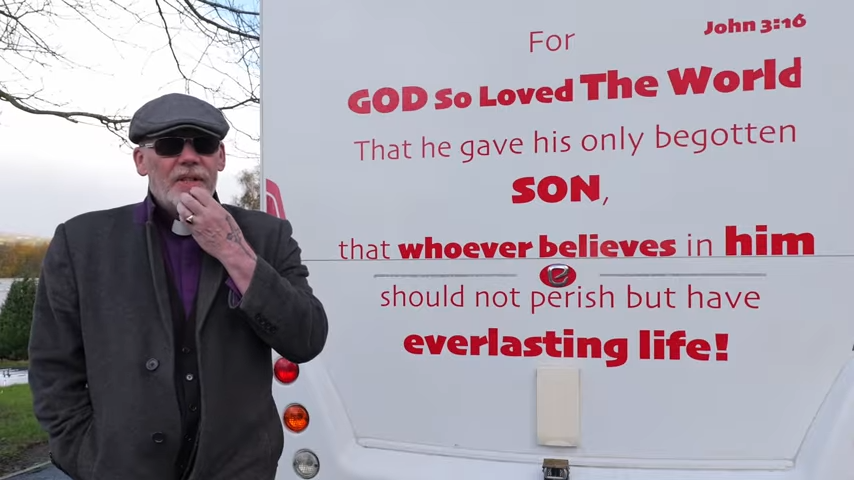 O pregador, de 59 anos, lidera a organização Church on the Street Ministries (Igreja sobre Rodas), sediada em Burnley, conhecida por atuar junto a pessoas em situação de rua e dependentes químicos.
