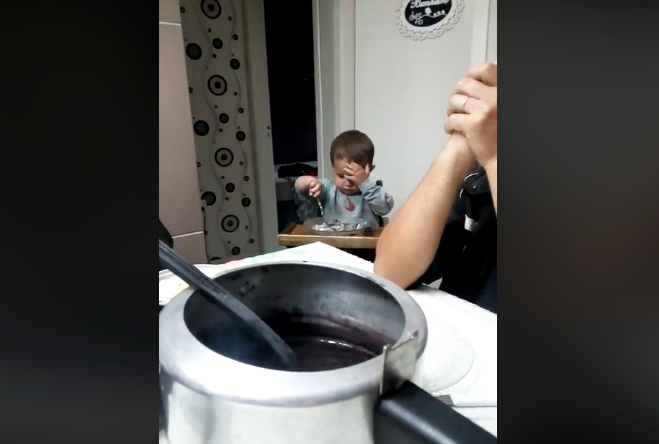 As imagens de um bebê de 1 ano e 7 meses comendo escondido durante uma oração antes da refeição está fazendo sucesso nas redes sociais. No vídeo, Bernardo pausa a oração para dar umas colheradas no prato. Em seguida, ele volta a acompanhar o agradecimento a Deus.